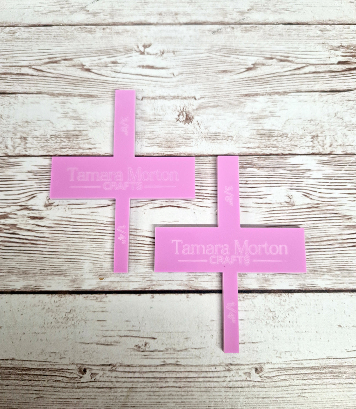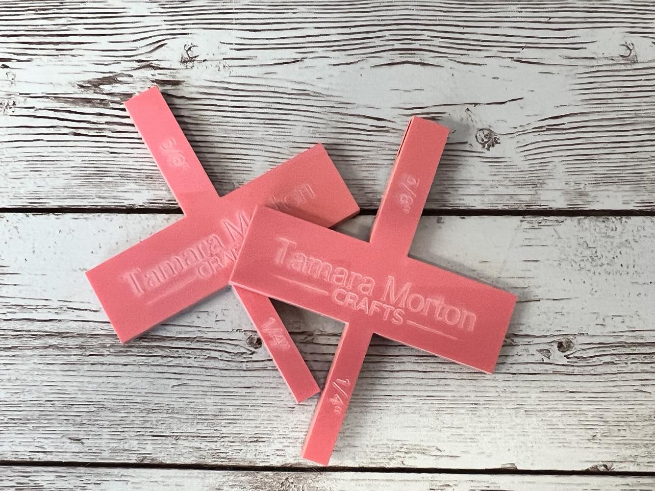 Use these handy little guides to create the perfect distances between your spine and covers. Two widths per tool: 1/4" and 3/8", which has been engraved for ease of use. They come in a pack of 2.